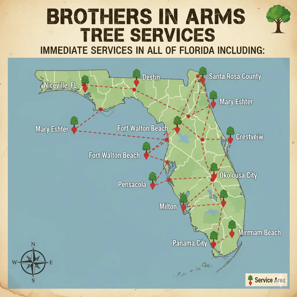 Got a tree emergency? Don’t wait—Brothers In Arms Tree Service is on call 24/7. If a fallen or hazardous tree threatens your home or business, call us immediately at (850) 461-9500. Our licensed, insured emergency crew will respond quickly to protect your property and restore safety.